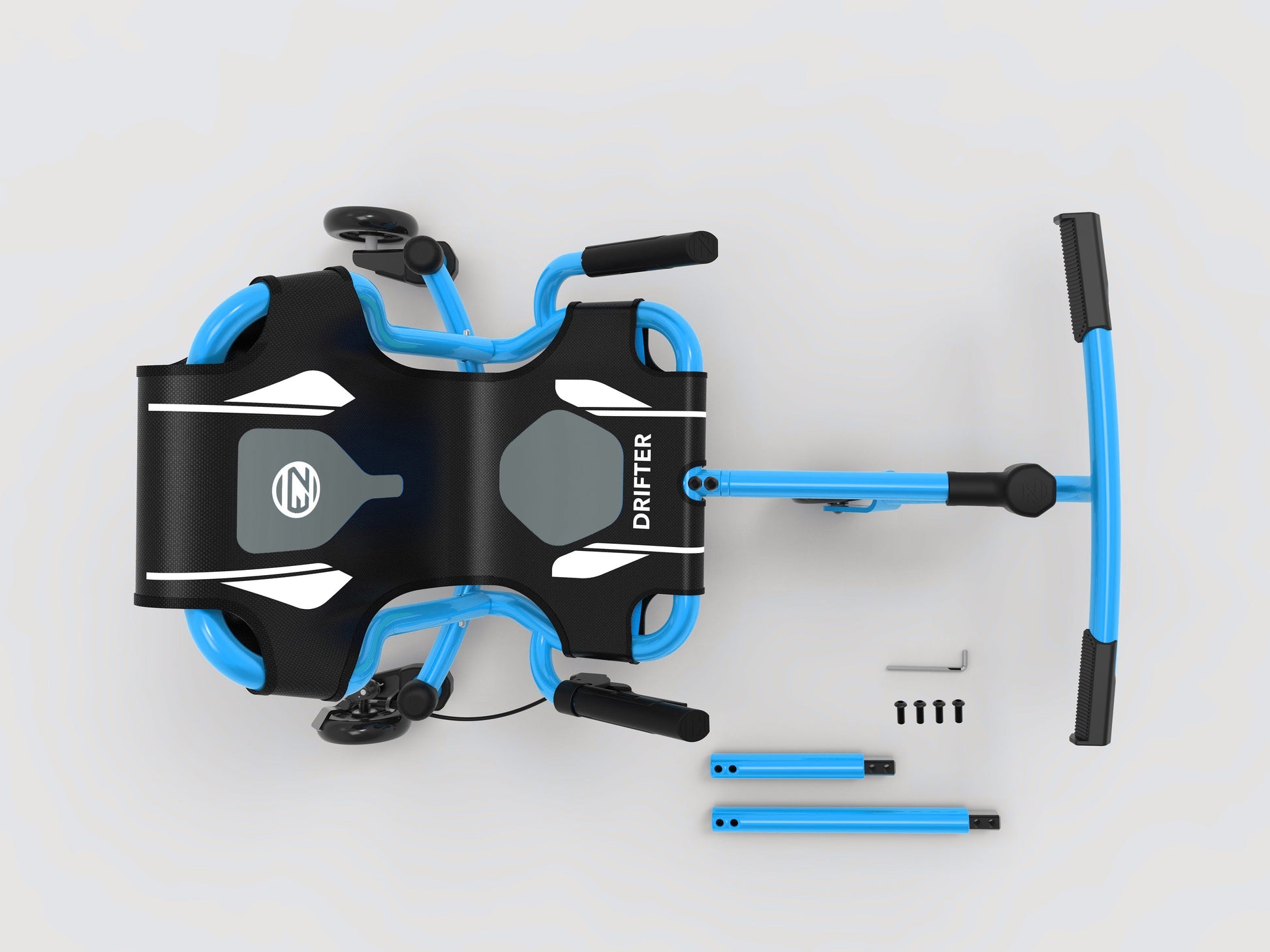 This machine is for EzyRolling Ninjas. Once you've mastered how to Curve Your Way, the Drifter's unique patented back wheels design lets you 'drift' round corners. It's fun, fluid and fearless and now thanks to its X-Design features, it's even more comfy with its new seat shape that wraps around your back and racier with it is new grips and seat cover.