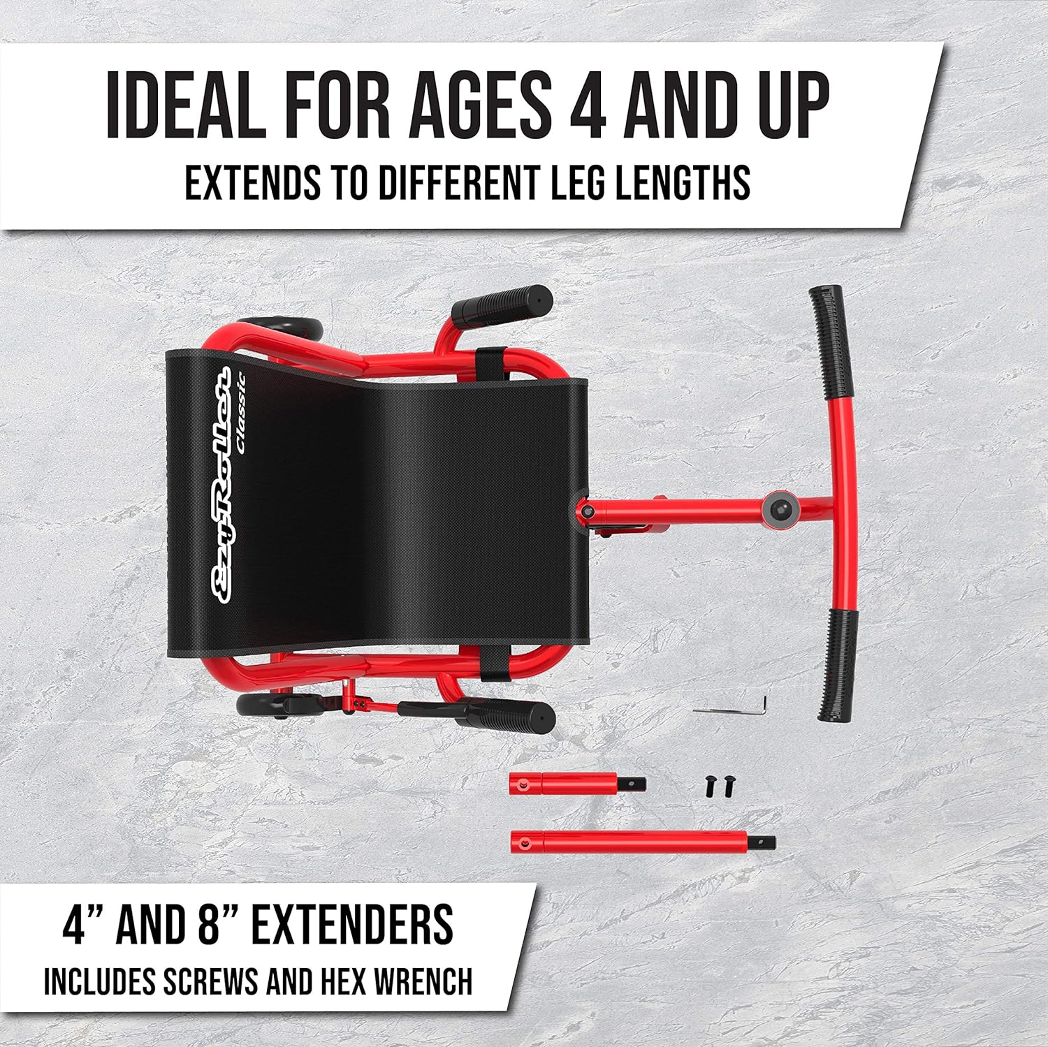 - Length: 30"-42" (78-110cm). Two extensions are included in the box to grow with the rider.